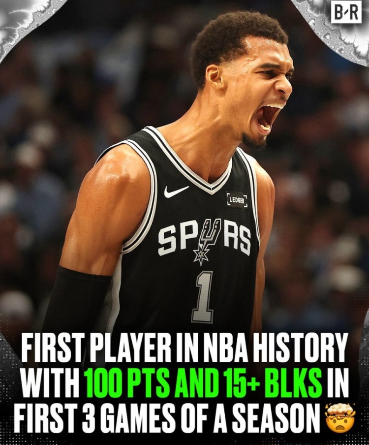 據統計,文班亞馬開賽季前三戰合計得到至少100分15帽,NBA曆史首人。
