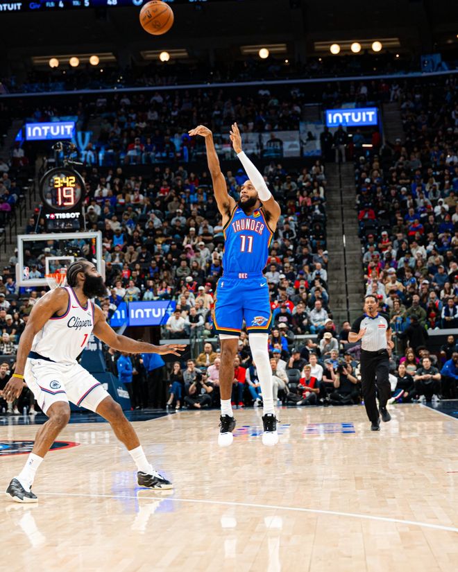 雷霆隊的亞曆山大得到30分、4個籃板和12次助攻,喬得到22分,華萊士得到12分,霍姆格倫得到11分和5個籃板,哈爾滕施泰因得到10分和7個籃板,維金斯得到12分。快船隊的哈登得到25分、6個籃板和6次助攻,科林斯得到17分和4個籃板,瓊斯得到16分,大洛得到12分,博格達諾維奇得到11分、6個籃板和4次助攻。