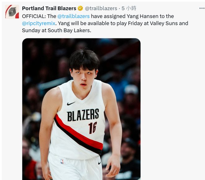 NBA方麵在今天傳來了重磅消息:波特蘭開拓者隊第三次下放楊瀚森到NBA發展聯盟,還是加盟撕裂之城混音隊。