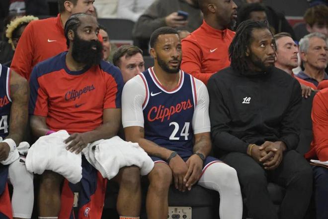 再看看快船,科林斯確實不錯,但鮑威爾離開後,快船後場出現嚴重缺人情況。目前比爾已經報銷,保羅太老嚴重下滑,倫納德養傷不知何時複出,博格丹狀態起伏不定,能依賴的隻剩下哈登。