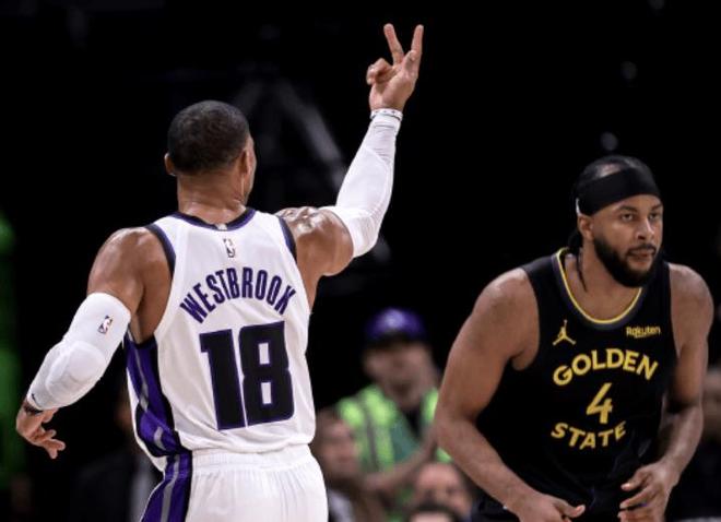 而國王隊的陣容,不說全聯盟最豪華,也絕對在第一梯隊行列中,三巨頭拉文+德羅讚+小薩博尼斯,加起來進過11次全明星,拉文是NBA扣籃王,德羅讚是精英級別的古典中投手,而小薩已經連續三年蟬聯籃板王,擁有極強的內線統治力。不僅如此,國王還有蒙克這樣的亂戰得分手,在角色球員中,蒙克的自主進攻能力算是頂級。此外,今夏休賽期國王還簽下威少和施羅德,一個曆史三雙王,一個世界杯+歐錦賽雙冠王,世界杯MVP。威少現在雖然是淪落到底薪球員了,但他顯然還是有油的,在比賽中激情活力拉滿,這個陣容怎能不用豪華來形容。