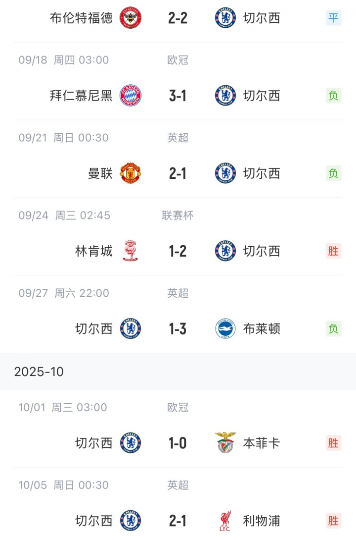 9月,切爾西遭遇三場不勝,而且1-2不敵曼聯,月底又主場1-3輸給布萊頓。